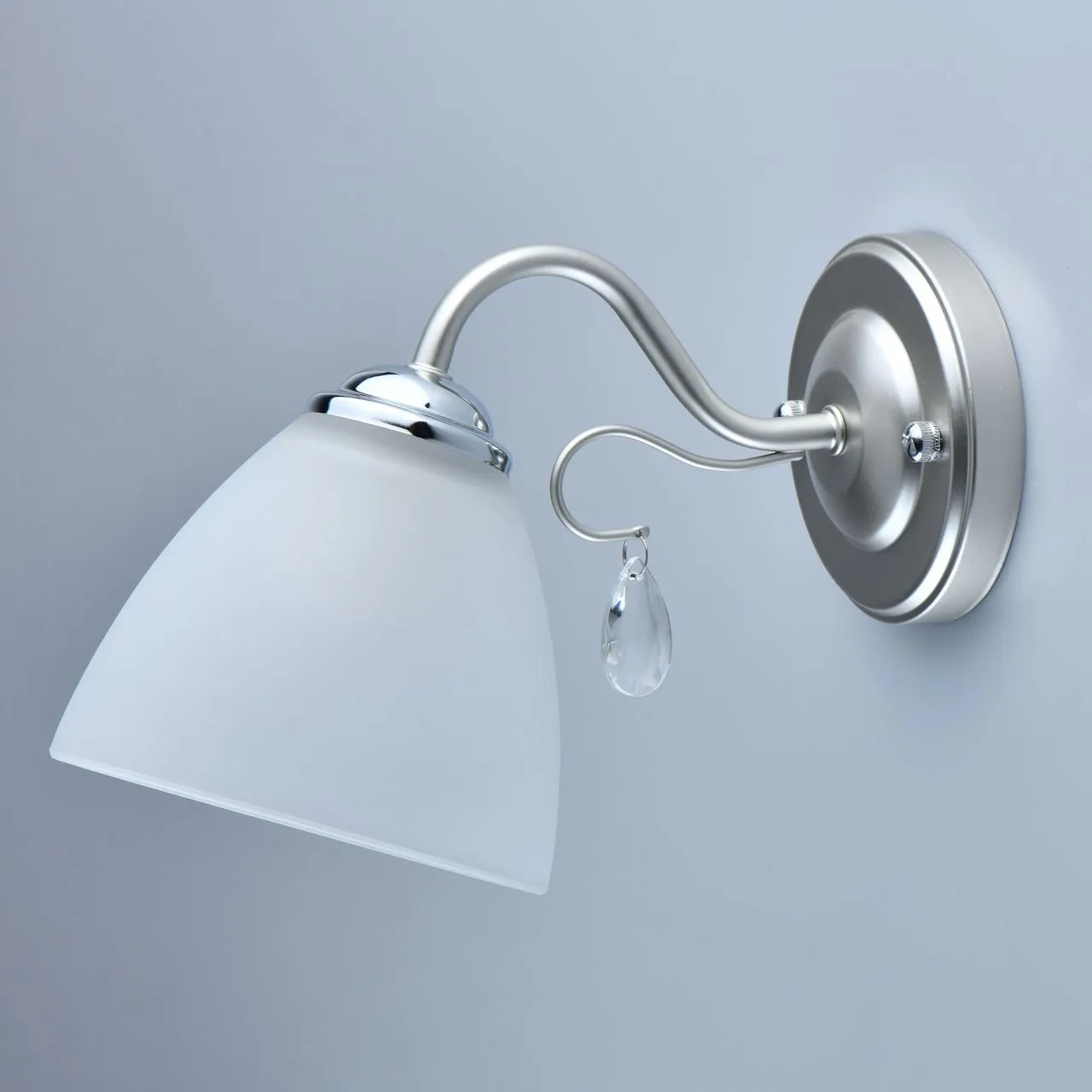Основание/металл/перламутровое серебро, хром Плафон/стекло/матовое Декор/хрусталь/прозрачный
