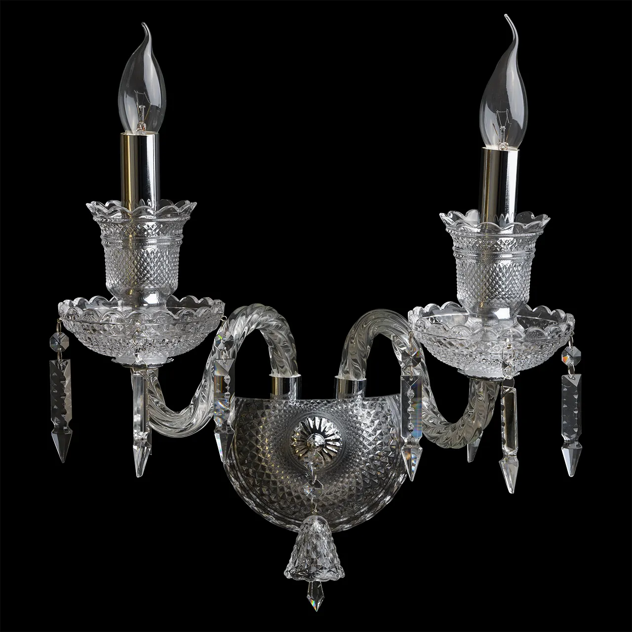 Металлическое основание цвета хрома, декоративные элементы из стекла и прозрачного хрусталя