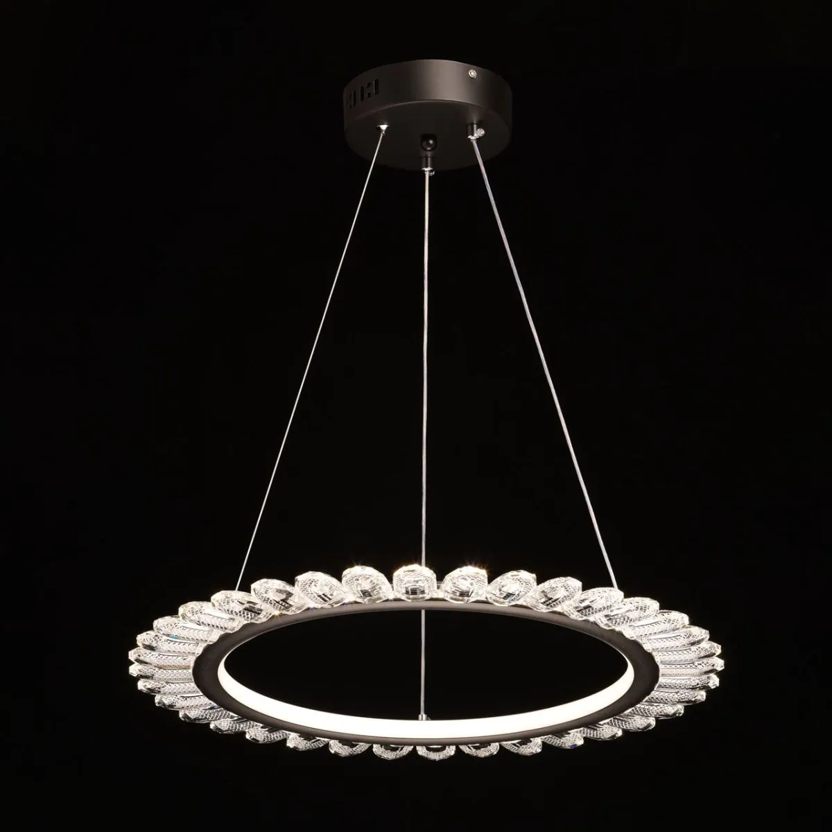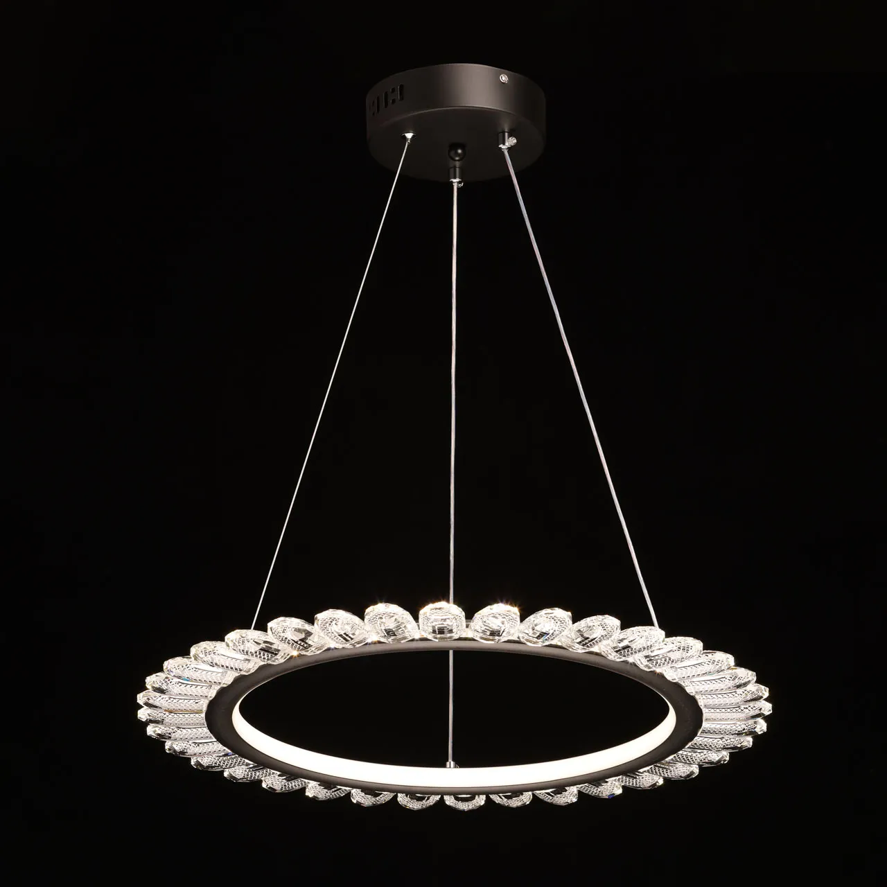 Основание/ металл/ черный Плафон/ сплав алюминия, силикон/ черный, белый Декор/ акрил/ прозрачный
