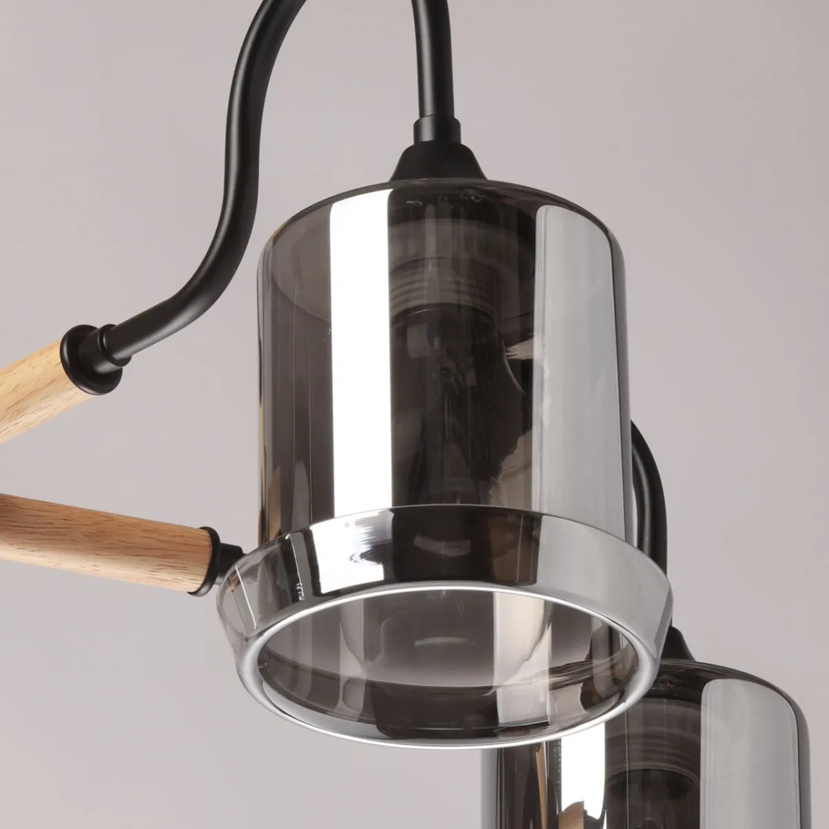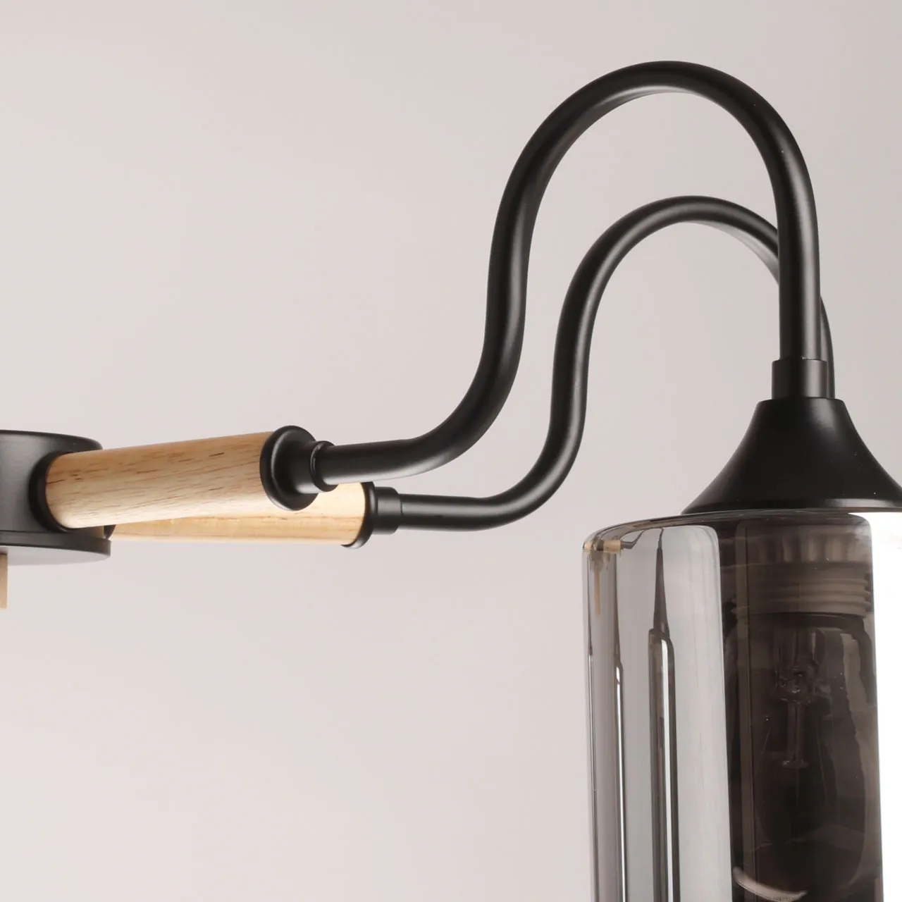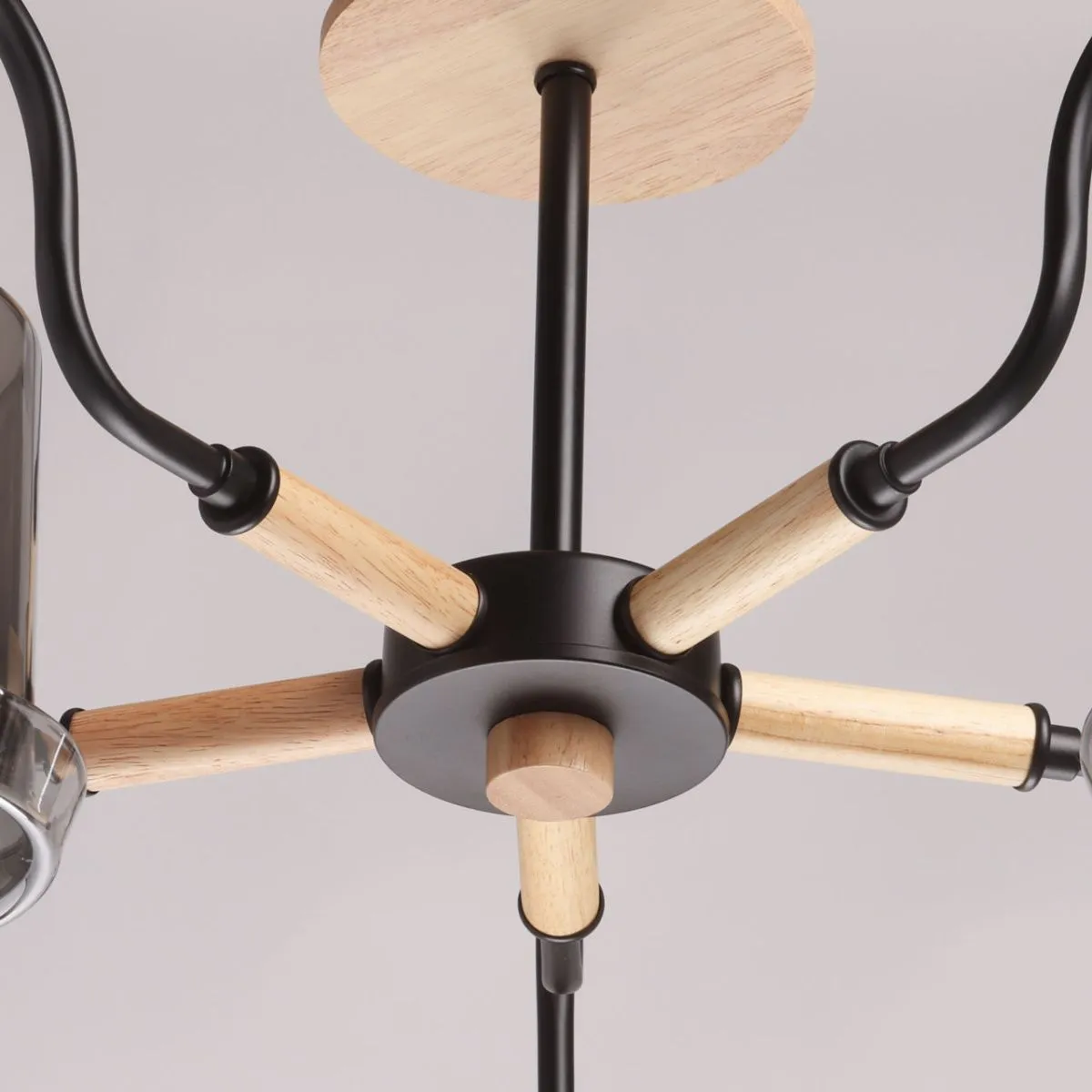 Основание/ металл/ черный Плафон/ стекло/ дымчатый Декор/ дерево/ светлый