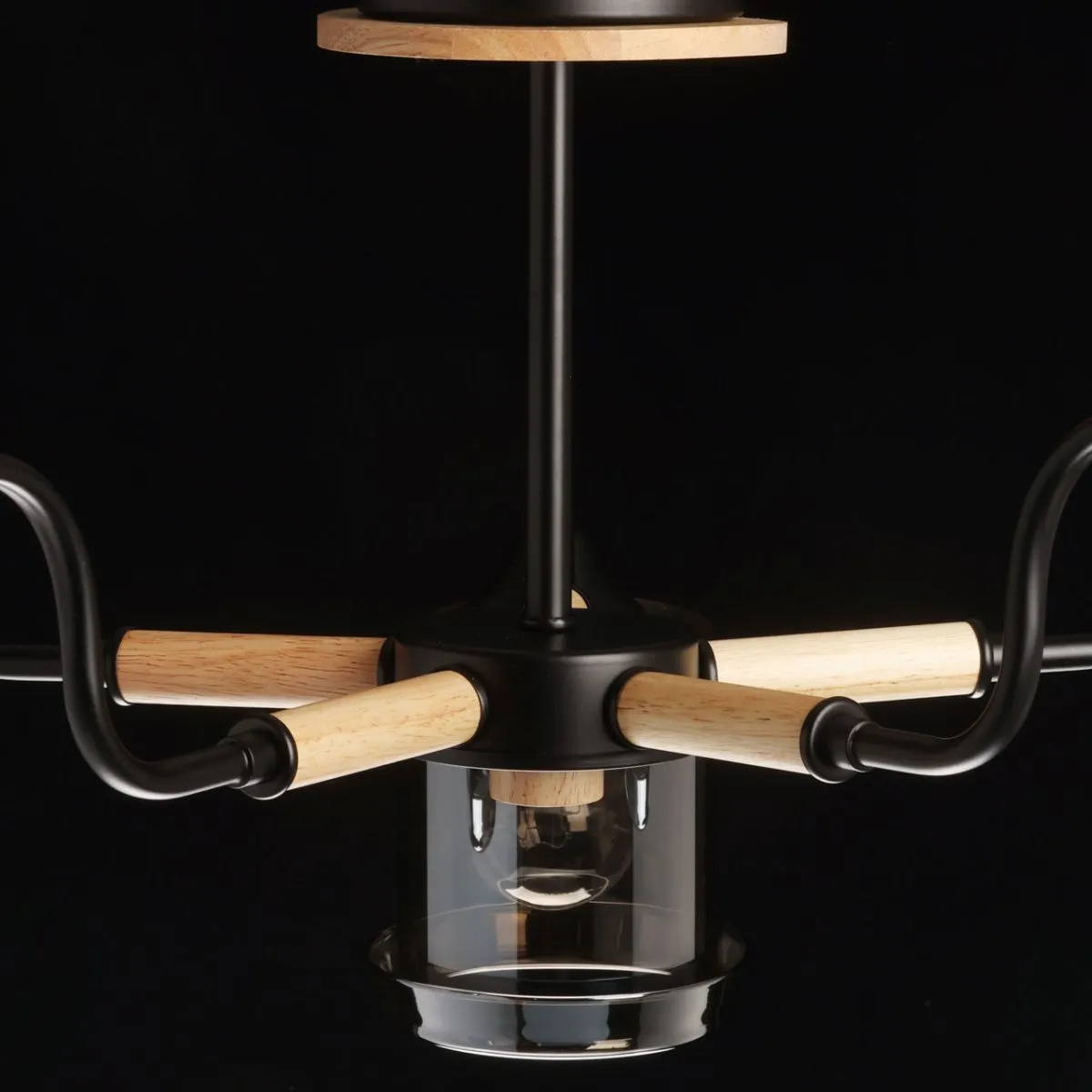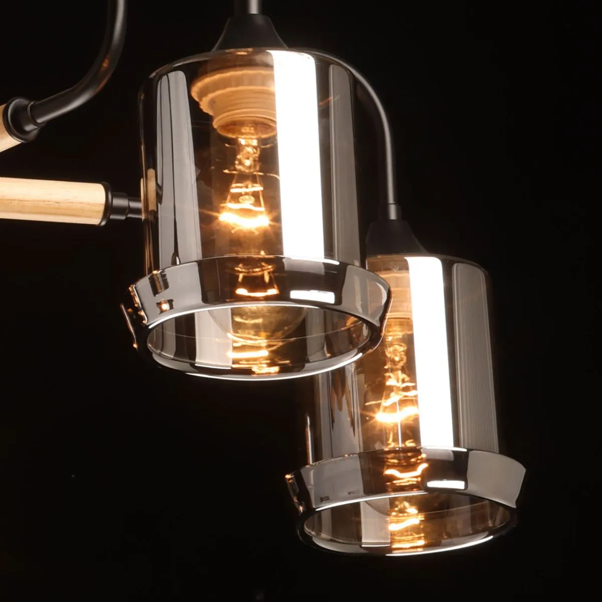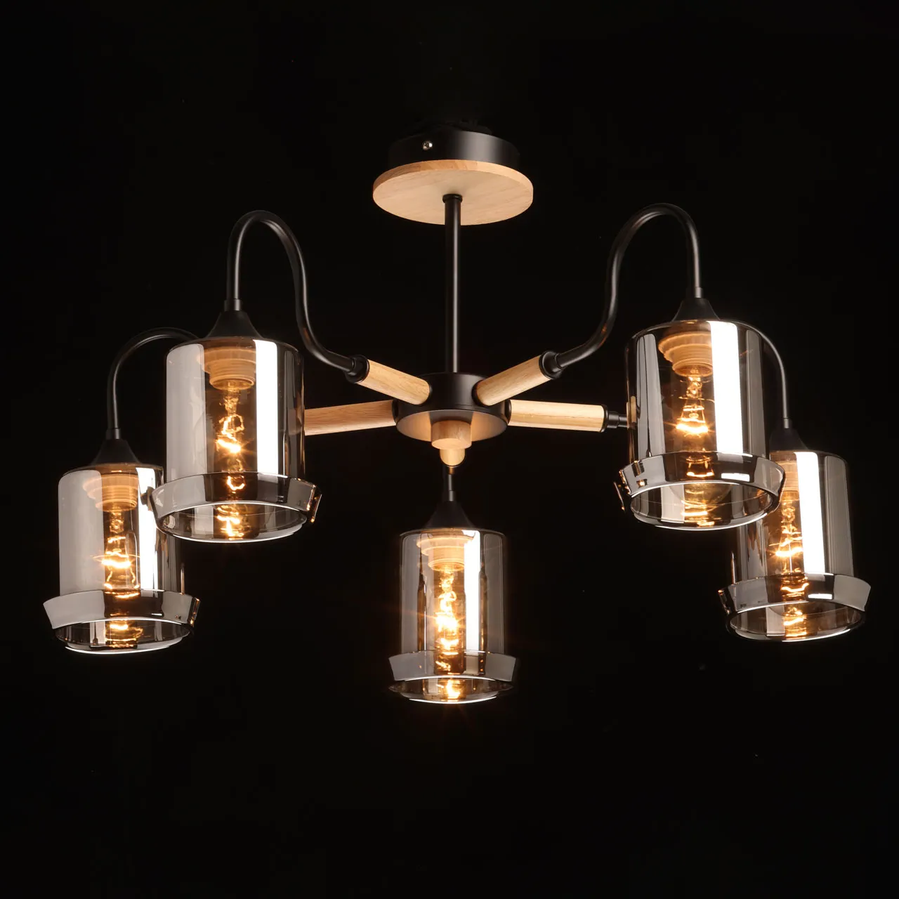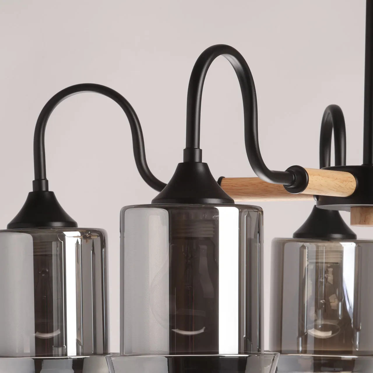 Основание/ металл/ черный Плафон/ стекло/ дымчатый Декор/ дерево/ светлый