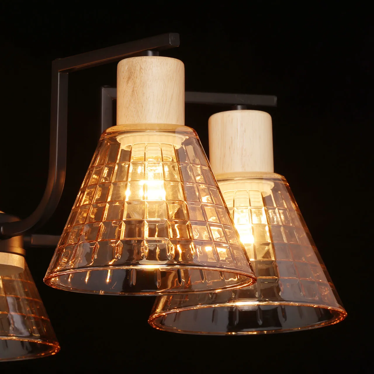 Основание/ металл/ черный Плафон/ стекло/ шампань Декор/ дерево/ натуральное