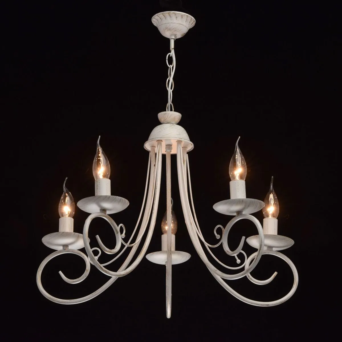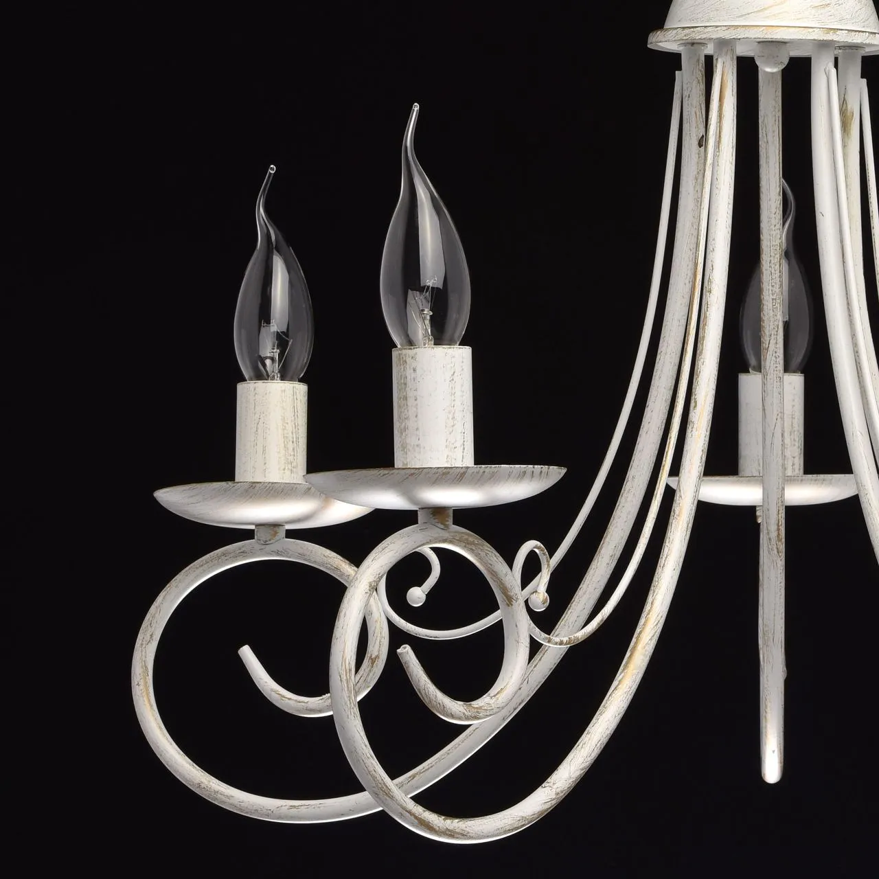 Металлическое основание матового белого цвета с золотистой патиной. Декор: металлические завитки бел