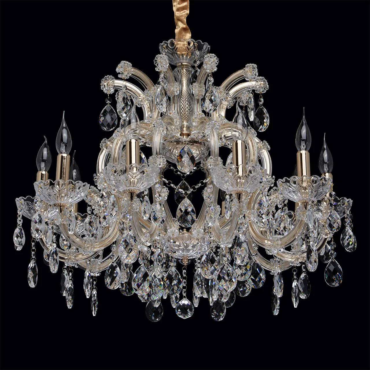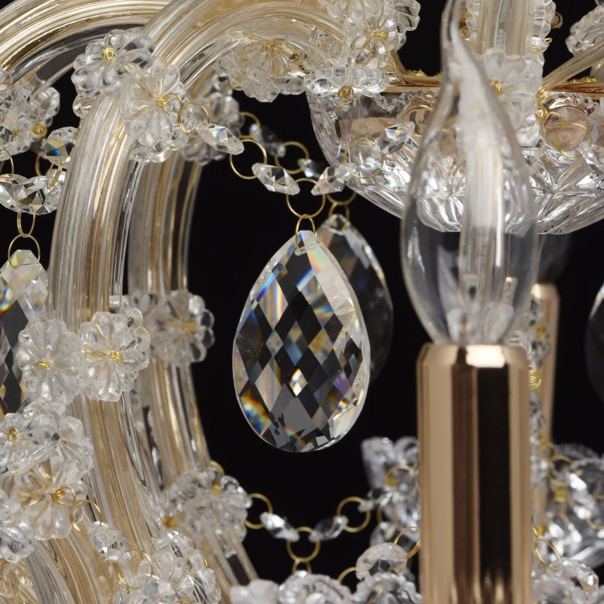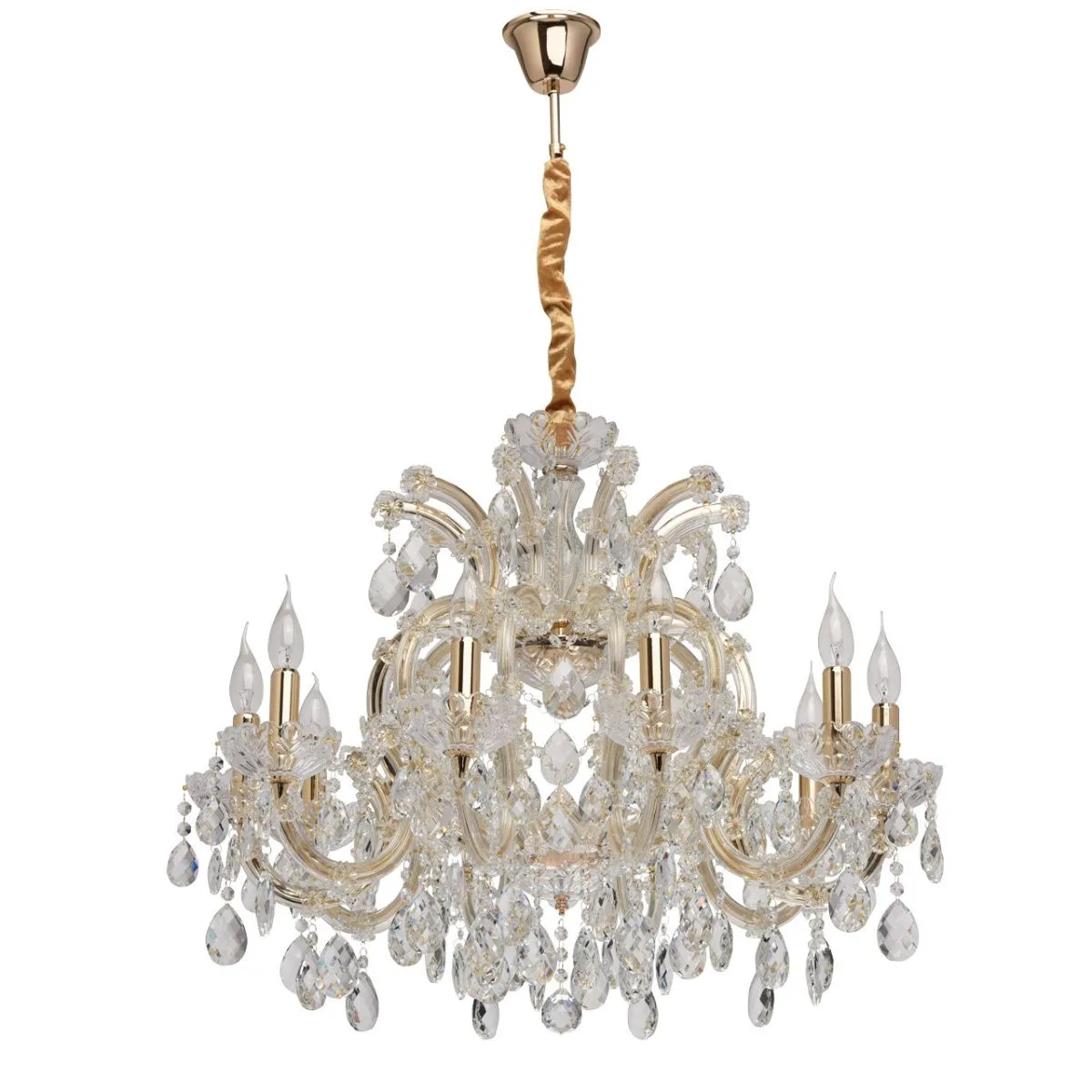 Металлическое основание цвета золота, основание из прозрачного гутного стекла, декоративные подвески