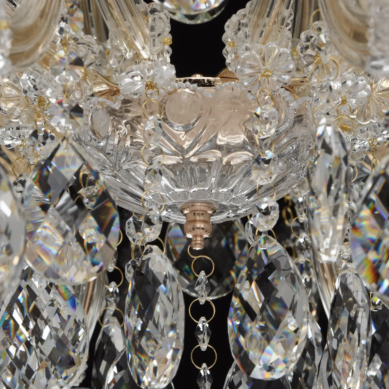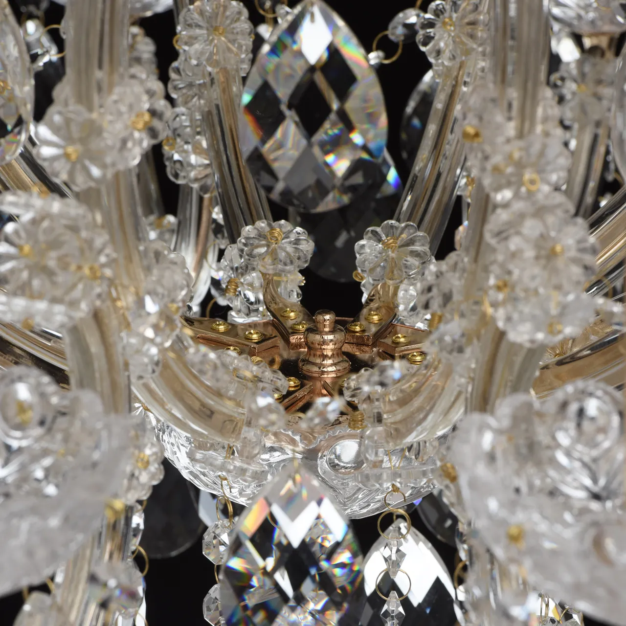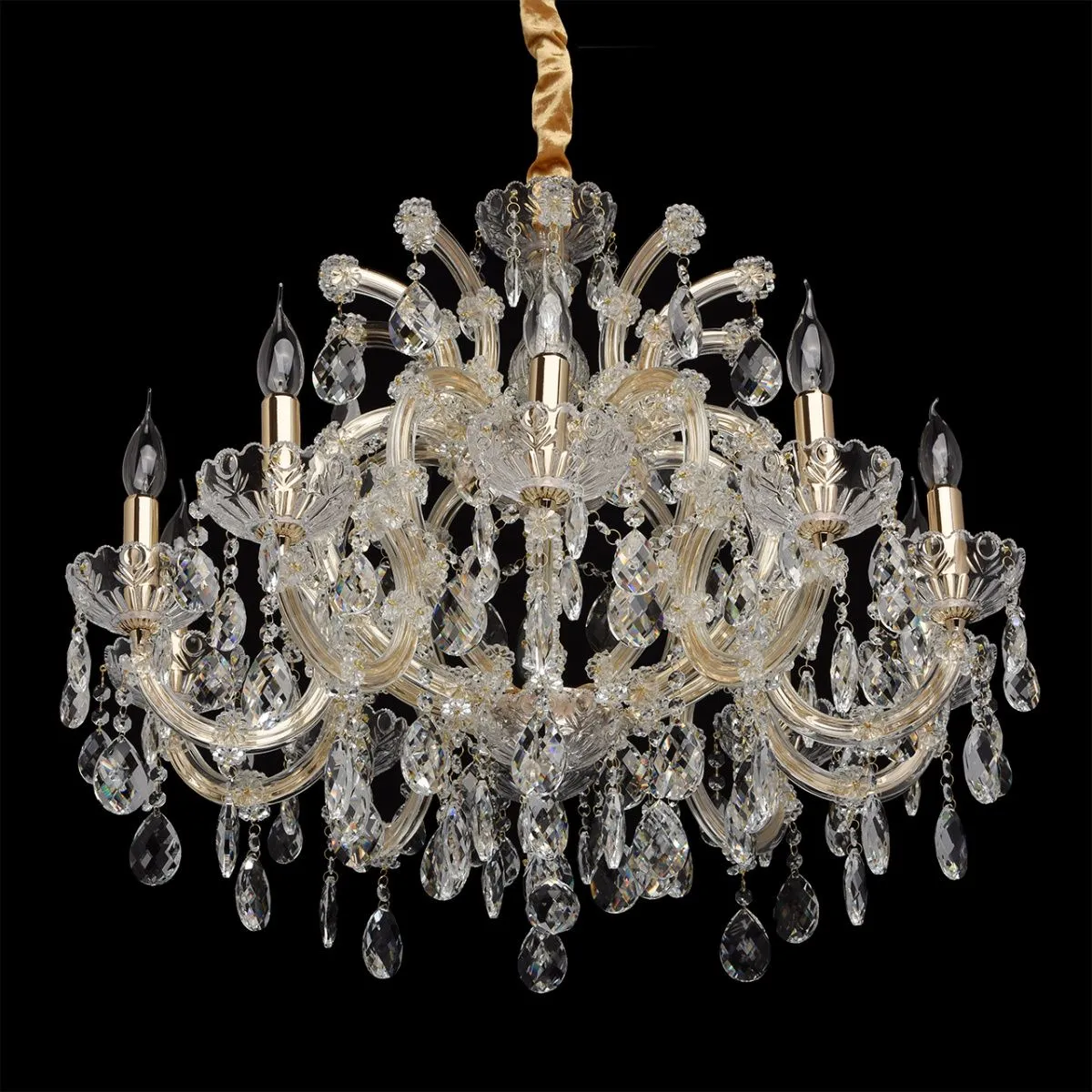 Металлическое основание цвета золота, основание из прозрачного гутного стекла, декоративные подвески