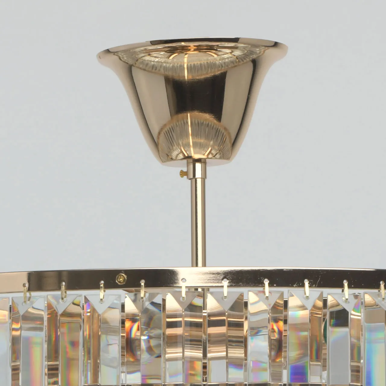 Металлическое основание цвета золота. Декор: хрусталь прозрачный.