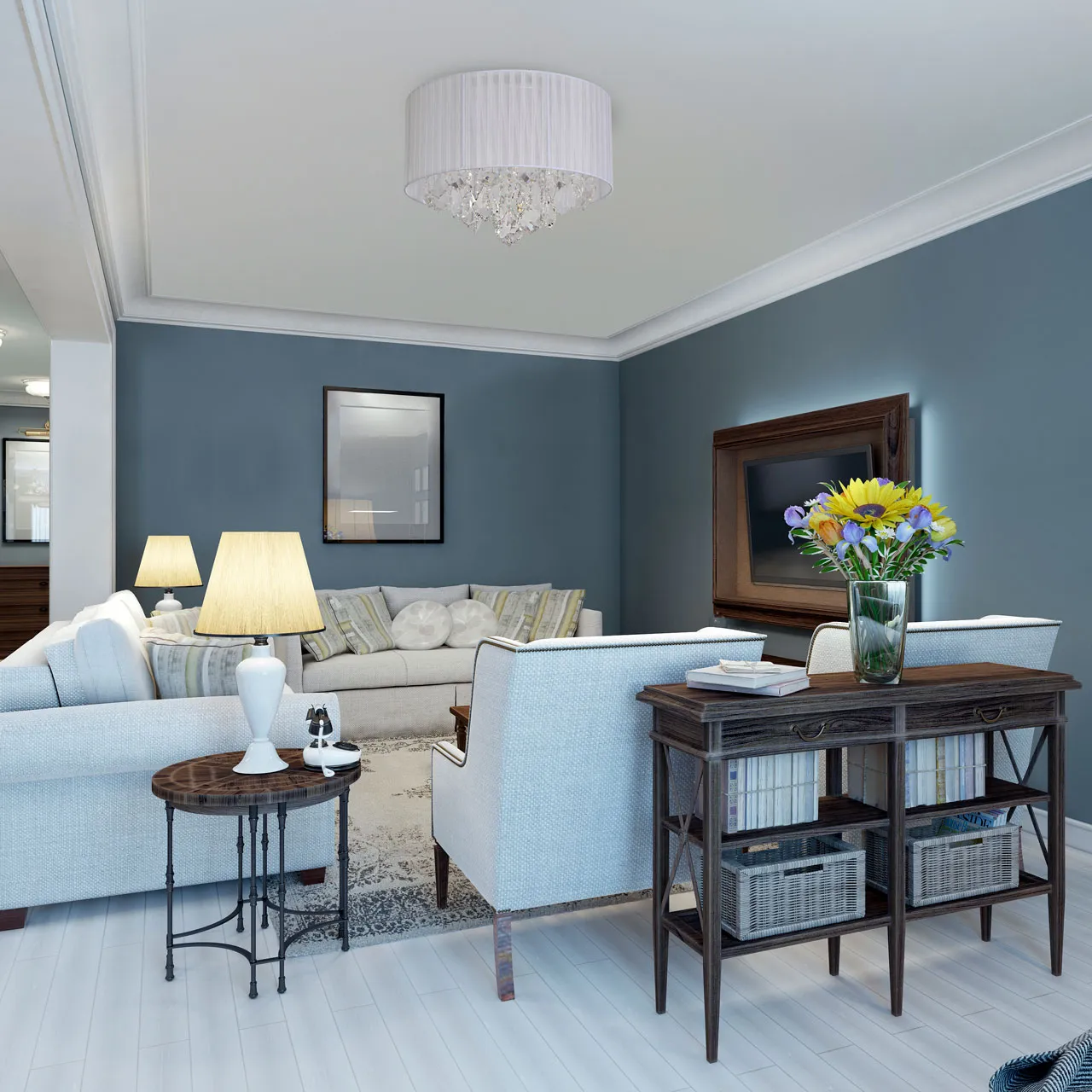 Основание/металл/хром Плафон/органза/белый Декор/хрусталь/прозрачный