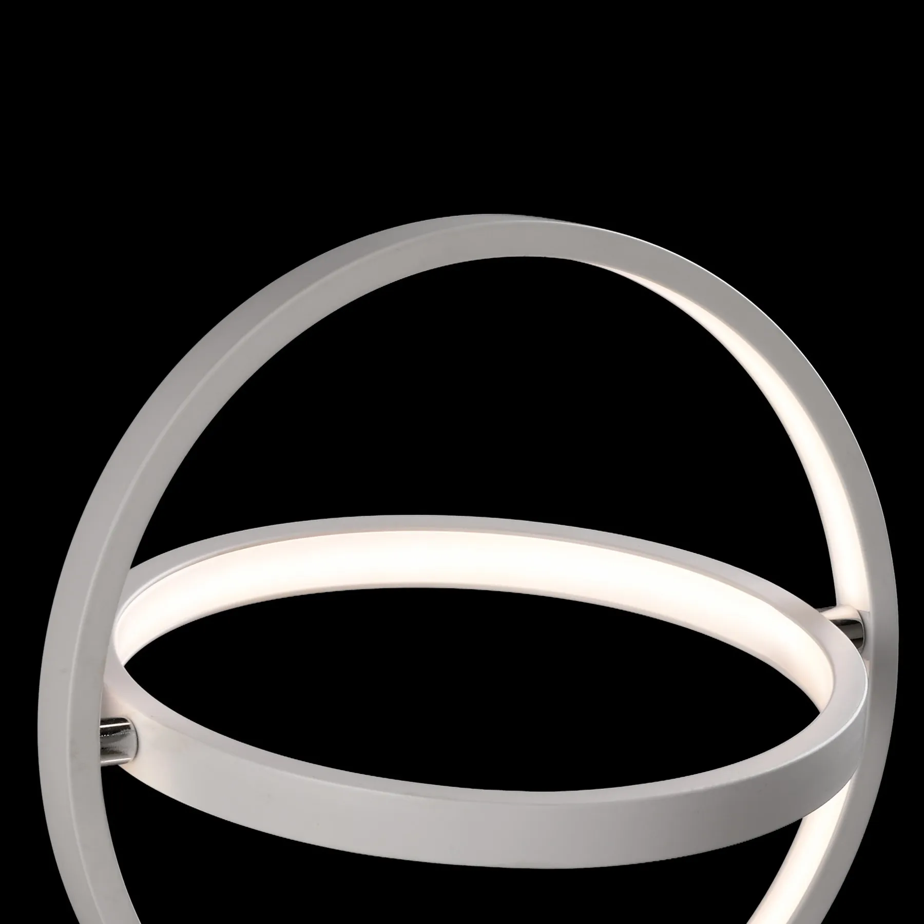 Встроенные светодиоды размещены в акриловом диффузоре внутри каждого кольца, образуя световые обручи и придавая образ космичности и инновации. Регулируемые подвесные светильники доступны в трех размерах. коллекция также предлагает фиксированный потолочный светильник и настольную лампу.